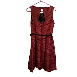Danny And Nicole Dress Sz 8 Red With Black Polka Dots with black belt Pockets