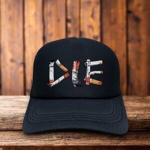 Features: Lightweight, medium crown, curved, foam front and mesh back, adjustable.