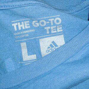 Brand New Mens Sz. Large Danny Mwanga Philadelphia Union Adidas T-shirt. Made of 100% cotton Made by MLS. It measures from top of collar to bottom of shirt is 30 inches and from armpit to armpit is 22 inches.