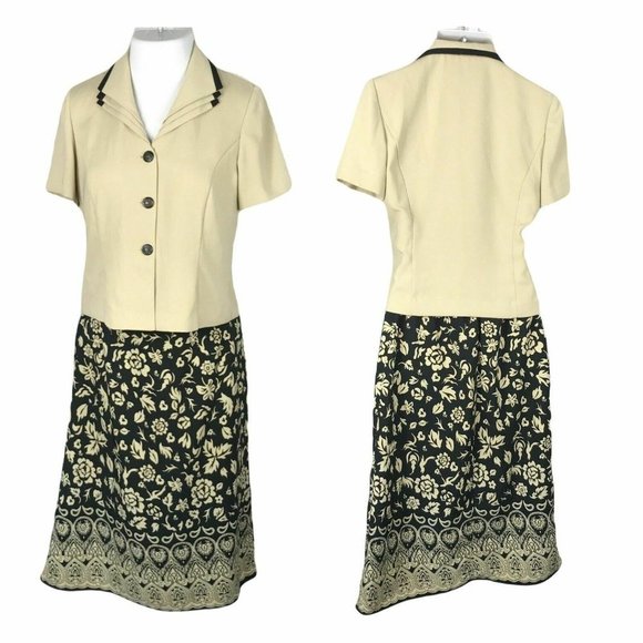 Danny & Nicole Blazer & Skirt Classy Beige & Black Outfit Suit Set ~ Sz 10P
