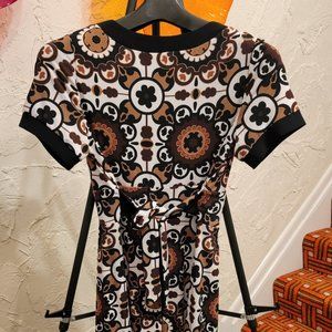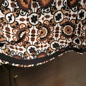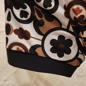 Danny & Nicole Brown Floral Dress with scoop neck line, waist tie sash and black trimmed short sleeve detail.