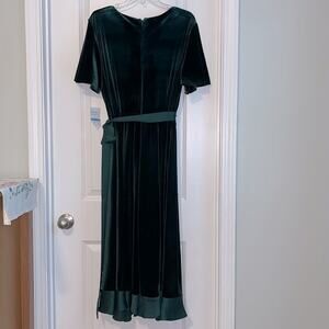 Danny & Nicole Dark Green Velvet Midi Wrap Dress, NWT