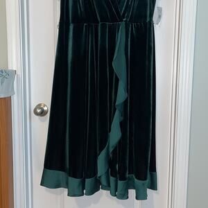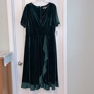 Danny & Nicole Dark Green Velvet Midi Wrap Dress, size 20W. NWT! Dark forest green color.