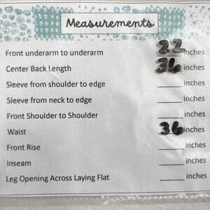 Measurements in photos. To ensure a good fit, it is recommended you compare measurements with a similar garment that you own.