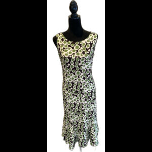 Danny & Nicole Dress size 10 Green Cream Fit & Flare + Stretch Sleeveless FUN