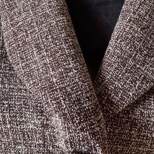 Stylish suit that gives the appearance of tweed but the comfort of polyester. Sleek tailored jacket. Includes a matching skirt. Ideal for office wear.