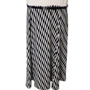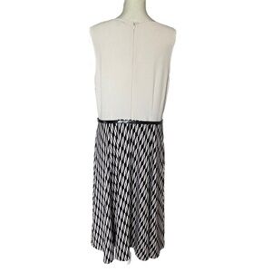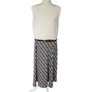 Danny & Nicole Geometric Print Belted Dress Plus Size 16 Cream Black Stretchy