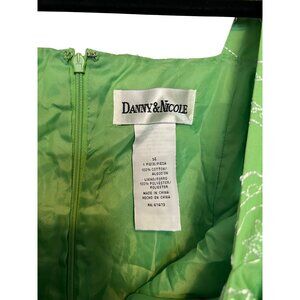 This Danny & Nicole dress features a charming green floral print with a fitted sleeveless design and a flattering white ribbon waist tie.
