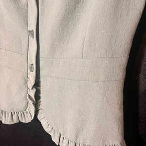 This is in fair preowned condition showing normal wear and tear. It does have some pulls snags. There is a loose seam/starting to separate some on back of skirt as pictured.