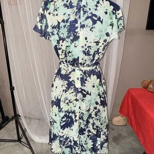 Danny & Nicole Navy and Mint Floral Midi Dress