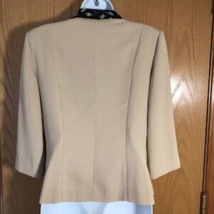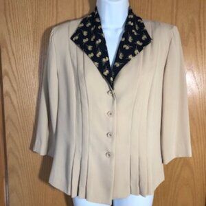 Danny & Nicole Retro Blouse Jacket Contrasting Collar Tan Navy Floral 8 Petite