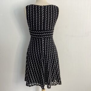 Danny Skye fit and flare Y2K sleeveless boatneck black&white open work overlay 6