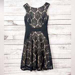 Danny and Nicole Black Lace Overlay Fit and Flare Cocktail Dress, EUC, Size 6