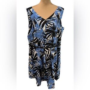 Danny and Nicole Dress A-line V-Neck & Back. Blue, Black & White Tropical Sz 18W