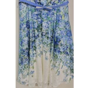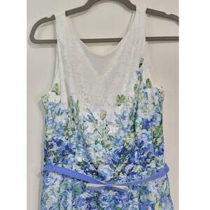 Danny and Nicole Dress Womens 12 Sleeveless Floral Lace Blue/White Belted Dress
