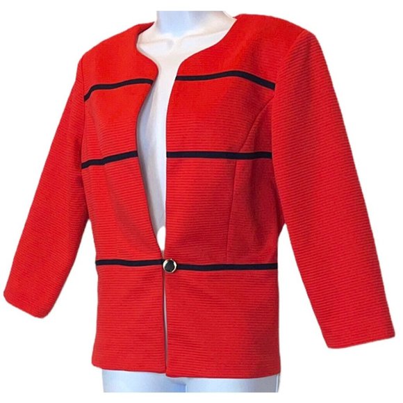 Danny and Nicole Woman's Ribbed Striped Bright Orange Shoulder Pad Blazer Sz 10