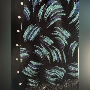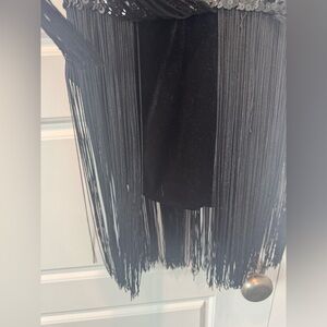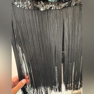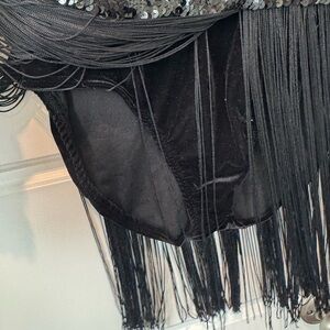 Dansco Dance Costume Black Velvet Blue Sparkle Tassel Skirt Womens Small Medium