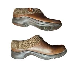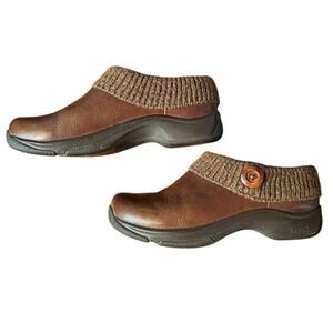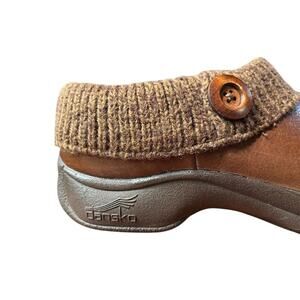 Dansco Kenzie Clogs Brown Leather Women's size 40 US 9-9.5 Knit Top Slip On Shoe