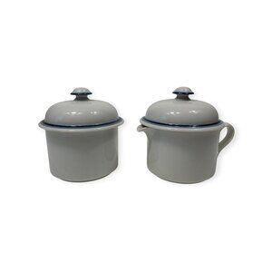 Dansk Bistro Blue Rim Ceramic Sugar & Creamer Set With Lids