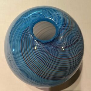1950's 60's Dino Martens Murano style Hand Blown Blue & Rust Spiral Art Glass 7” Round Vase.