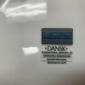 Dansk International Designs Gridworks 11" Dinner Plate Blue White Porcelain