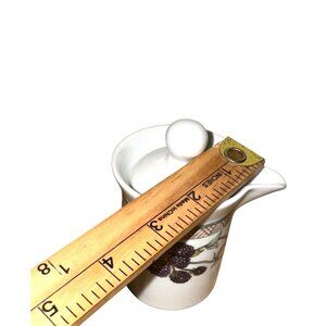 This Dansk Urban Fruits creamer and sugar set adds a delightful touch to any table setting. With intricate berry designs, both pieces are 5 inches tall and crafted from durable stoneware. Made in Portugal, these microwave and dishwasher-safe items are both practical and decorative.