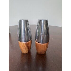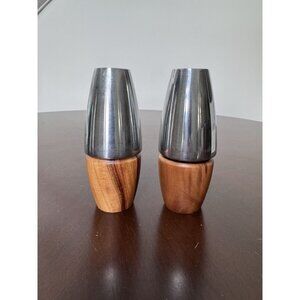 Dansk Wood Metal Salt Pepper Shaker Set Mid Century Modern MCM Danish VTG