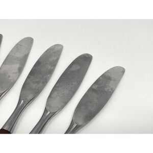Dansk FJORD Dinner Knives Teak Handle Stainless Steel Germany 8 3/8” Set Of 6