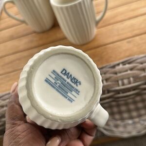 Champagne colored mugs with fluted pattern and handle. In VGUC.