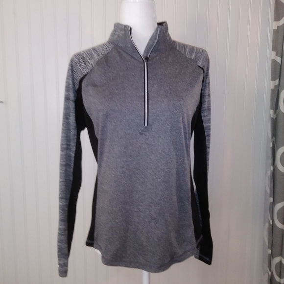 Danskin black and grey 3/4 zip pullover top. Thumb holes on the sleeves. 100% polyester. In great condition with no flaws. Love Danskin!!!!