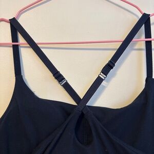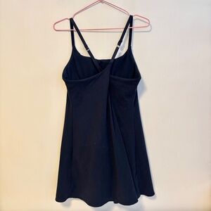 Danskin Athletic Mini Skort Dress with Built In Removable Pads Bra and Shorts and Cross Back Cami Straps in Navy Blue and Womens Size Small. Gently used and in great condition.