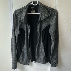 Danskin Now - Women's Semi Fitted Full Zip running jacket- black and grey pattern