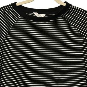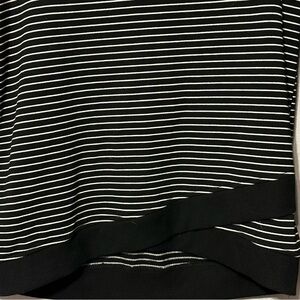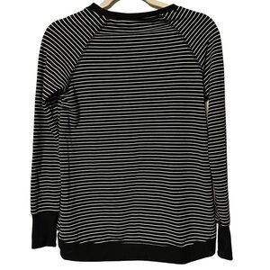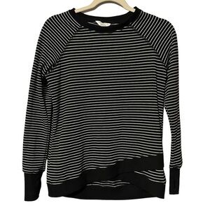 Danskin Black & White Striped Sweatshirt Size XS. Great condition see photos for details. Super soft with cute asymmetrical detail at front/bottom. Thumbholes! Approximate measurements 24” shoulder to hem and 17” pit to pit unstretched.