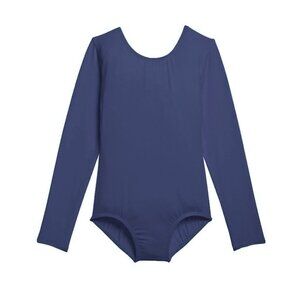 Danskin Childs Long Sleeve Leotard Navy Blue Scoop Neck Class Size Medium