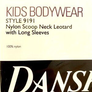 The Danskin Blue Long Sleeve Leotard is perfect for girls. Made of durable, comfortable nylon, it features a stylish scoop neck design. Ideal for dance classes, it's a medium size.