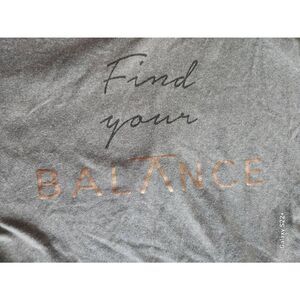 ▪︎DESCRIPTION: 3 piece PJ set. Includes gray and peachy patterned pants, peachy long sleeved top and gray tank that says "Find Your Balance"