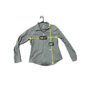 Danskin jacket, gray zip jacket, women's activewear, medium size jacket, casual wear jacket, lightweight jacket, full-zip jacket, collared jacket, soft fabric jacket, active lifestyle wear, front pocket jacket, Danskin women's top, gray casual top