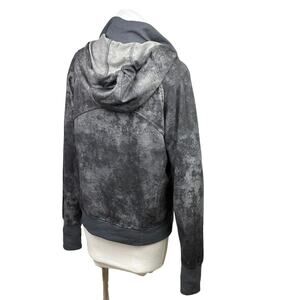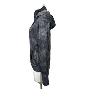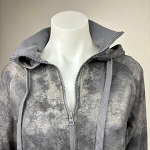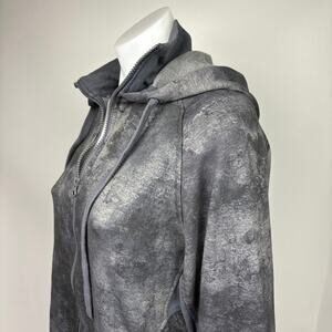 Danskin Grey Tie Dye Marble Double Collar Full Zip Hooded Drawstring Ribbed Trim Kangaroo Pockets Long Sleeve Casual Athletic Active wear Jacket Size M