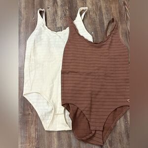 Danskin Intimates Brown and White/Yellow Ribbed Bodysuits Size Large