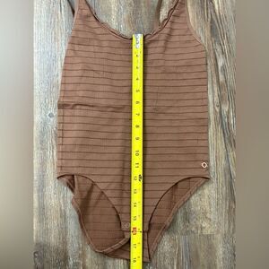 Danskin Intimates Brown and White/Yellow Ribbed Bodysuits Size Large. Yellow color is very light. NWOT condition. Button in the crotch area. 2 bodysuits in this listing. Can separate if requested. Ask me anything!