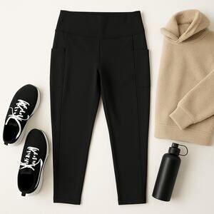 Danskin Leggings Sporty Black High Rise Side Pockets Size L