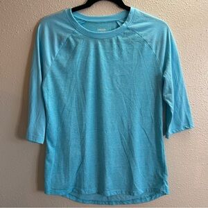 Danskin casual light blue athletic top with 3/4 sleeves. Perfect for everyday wear.