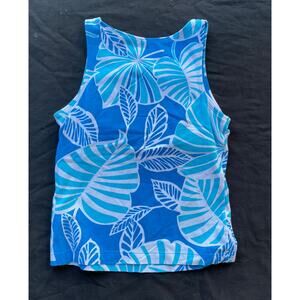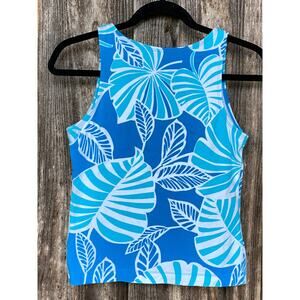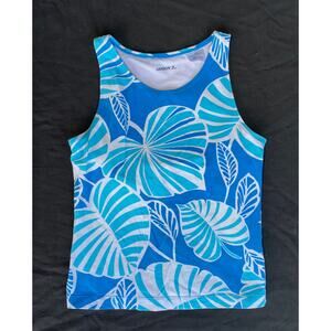 Danskin M Blue Floral Soft Knit Stretch Cotton Workout Fitness Tank w Bra