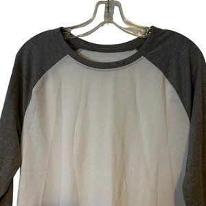 Danskin Now Baseball Shirt Womens Large 3/4 Sleeve Loose White Gray Relaxed