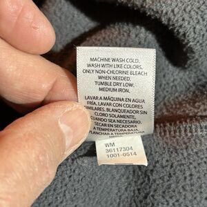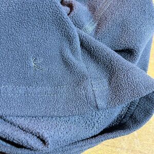 It is size L/G (12-14) and is made of 100% polyester. The pullover has a quarter-zip closure and long sleeves.