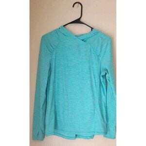 Danskin Now Hooded Blue Green Dri More Light Thermal Pullover Small Ruched Thumb holes