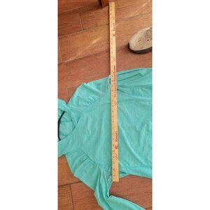 Danskin Now Hooded Blue Green Dri More Light Thermal Pullover Small Ruched Thumb