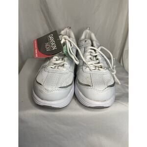 Pair of NEW Danskin Now performance toning athletic shoe for walking. White in color. Women’s size 6 1/2. Features I-Net technology. Rocker shoe. These are new with tags. There is one scuff on the side where it peeled somehow - minor - and a spot of dirt on the laces. See pictures. These are brand new. Never worn. I bought them in hopes they would fit since they were the only pair close to my size, but they were just a tad too big. Failed to return them. My loss, your gain.