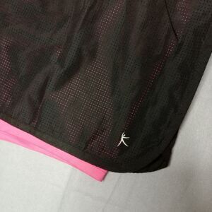 Elastic waist - layered - pink & black - inner media pocket - semi-fitted - poly/spandex blend - dri-more - moisture wicking