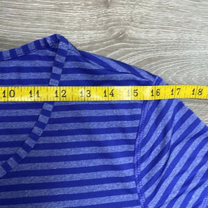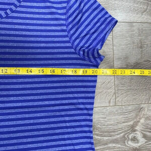 Danskin Now Semi Fitted Short Sleeve Striped Dri More Athletic Shirt in size XL (16-18). Excellent preowned condition. Please see photos for approximate measurements and details. Item may show difference in color based upon photography and perception. Photos are part of the description, as everyone’s level of condition may vary. From smoke free and pet free home. All packages are shipped the same or next business day.